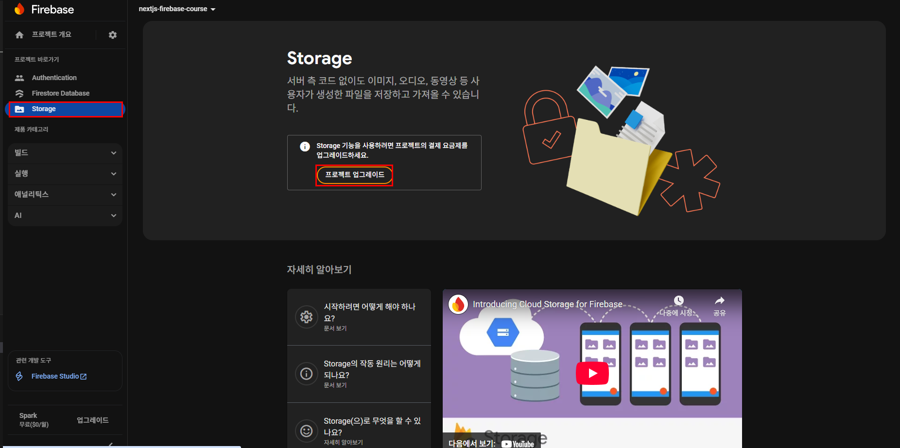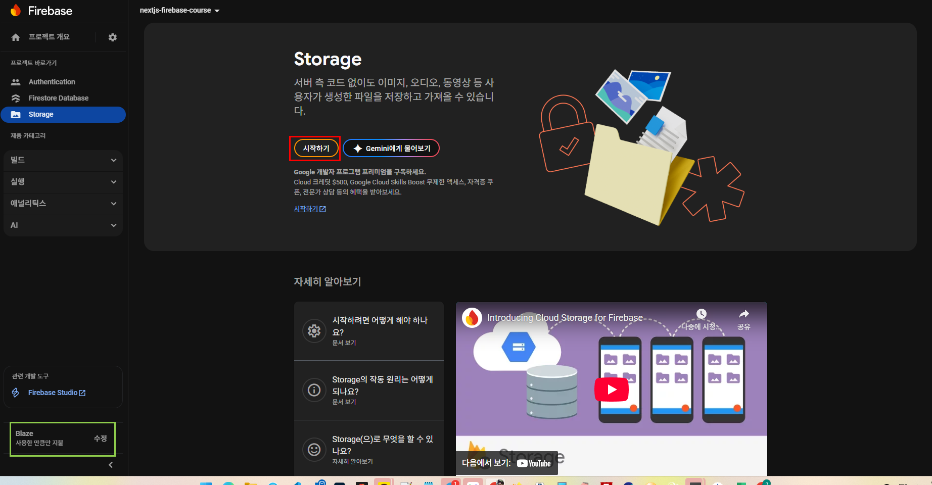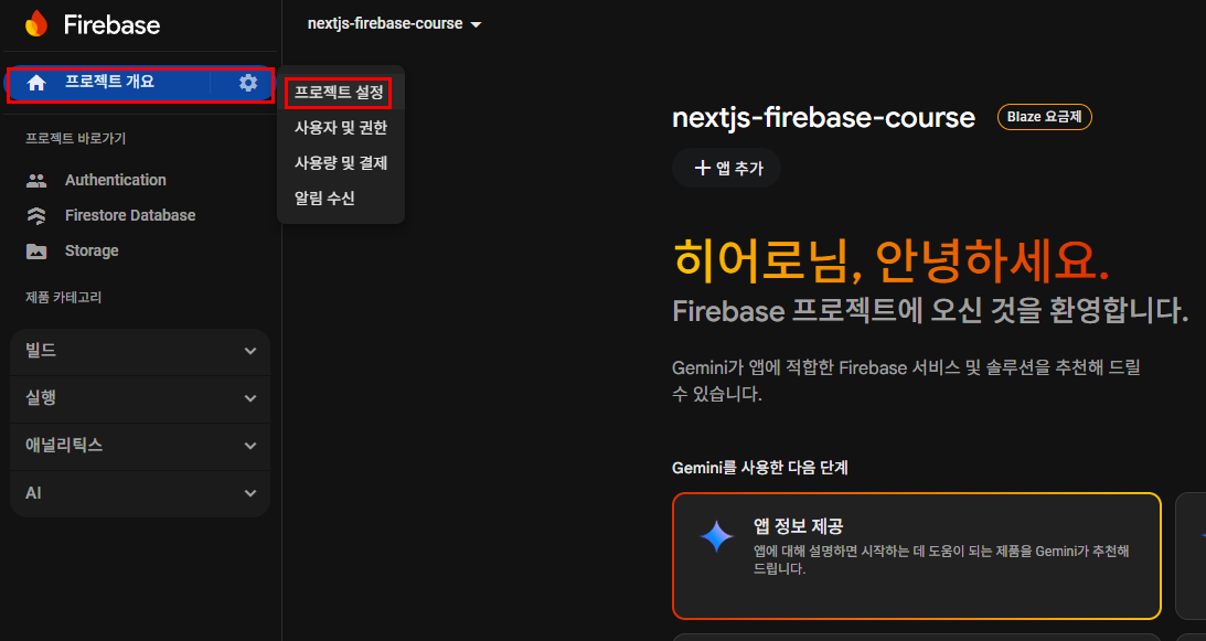 - Firebase Console์์ ํ๋ก์ ํธ ์์ฑ & ์๋น์ค ์ผ๊ธฐ(Auth/Firestore/Storage)