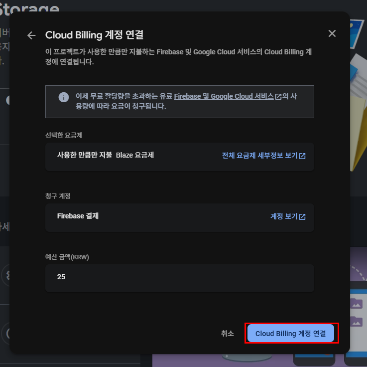 - ์คํ ๋ฆฌ์ง๋ถํฐ๋ ์๊ธ ๊ฒฐ์ ๊ฐ ํ์ํ๋ฏ๋ก GCP์ Cloud Billing ๊ณ์ ์ด ์ฐ๋๋์ด์ผ ํฉ๋๋ค.