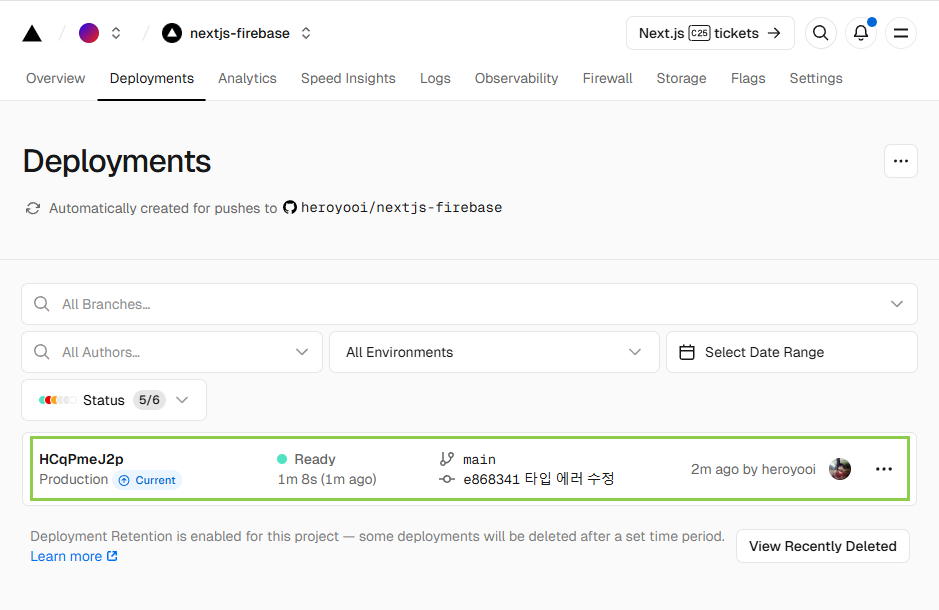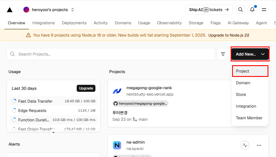 ์งํ์ค์ธ ์ ์ฅ์ Vercel์ ํ๋ก์ ํธ ๋ฑ๋ก