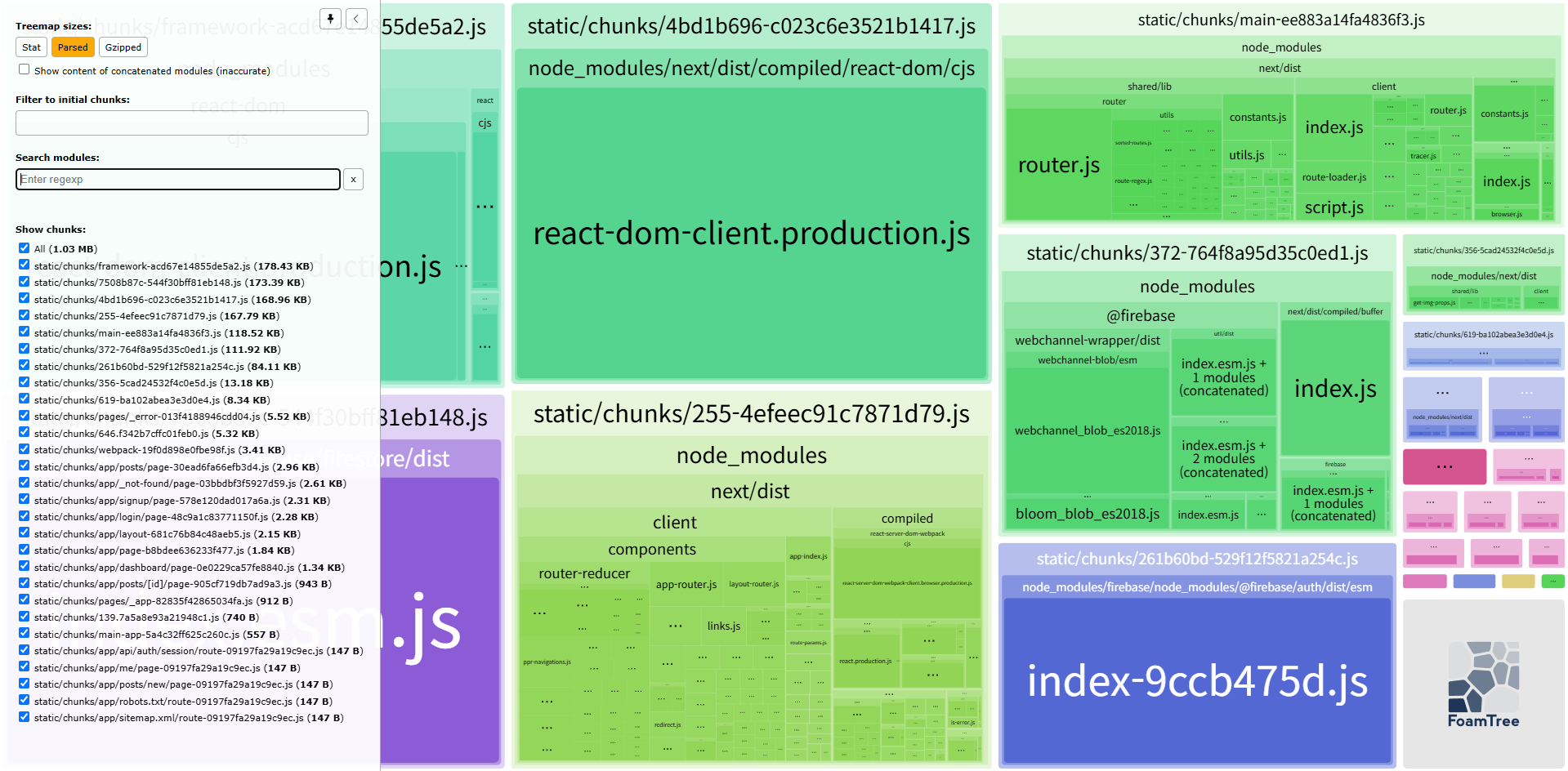 @firebase/auth,@firebase/firestore๊ฐ ํฉ์ณ์ ์ฝ 100~150KB ์ ๋ ์ฐจ์ง (Firebase SDK ํน์ฑ์ ๋ถ๊ฐํผ)- Next.js ๋ผ์ฐํฐ ๋ฐ React Core ๊ฐ ์ฝ 300KB